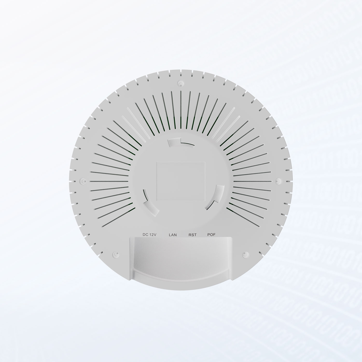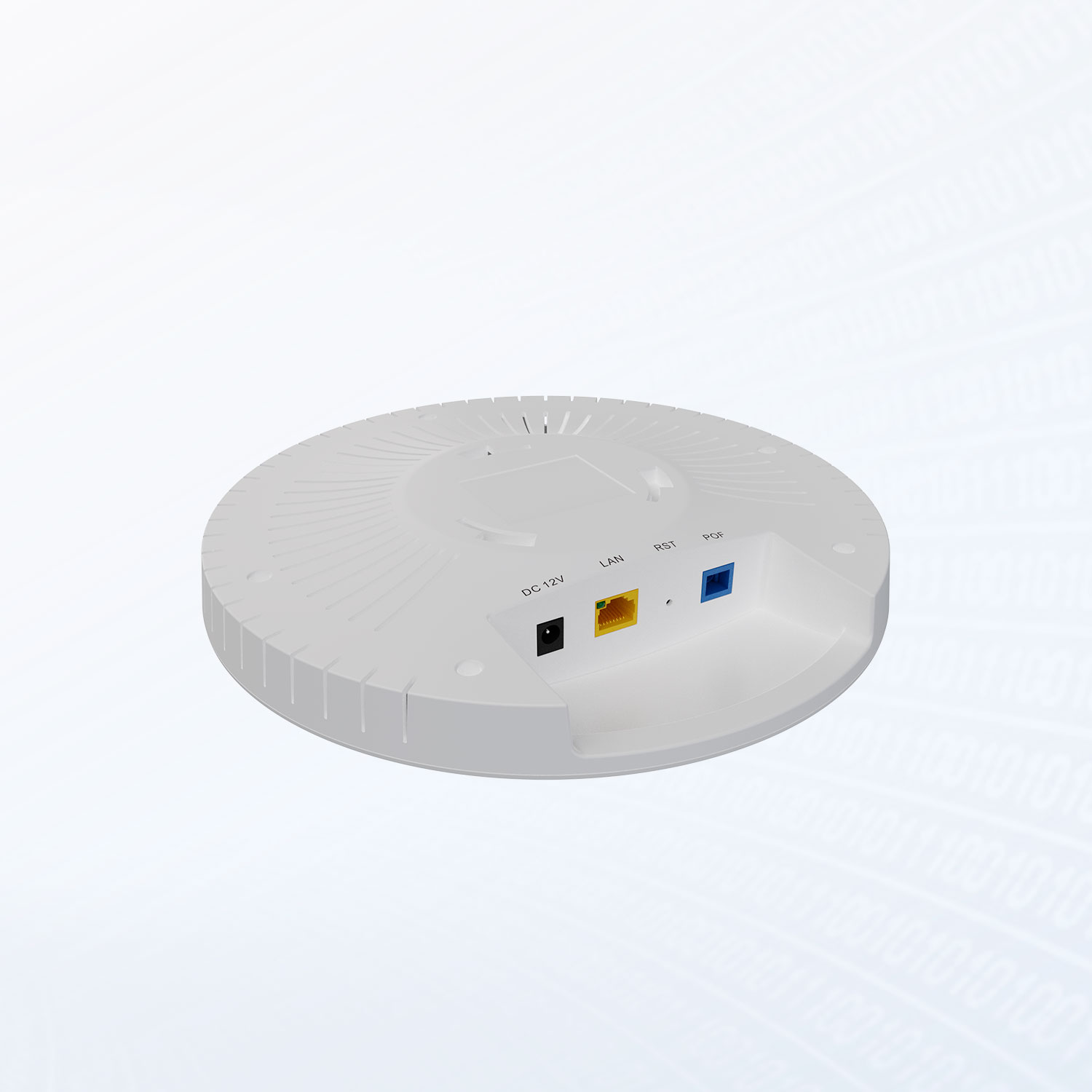 1XPON(PoF)+1GE+WiFi6 Ceiling Installation ONT Spec: 1*XPON(PoF)+1*GE+WiFi6 Weight: 400g